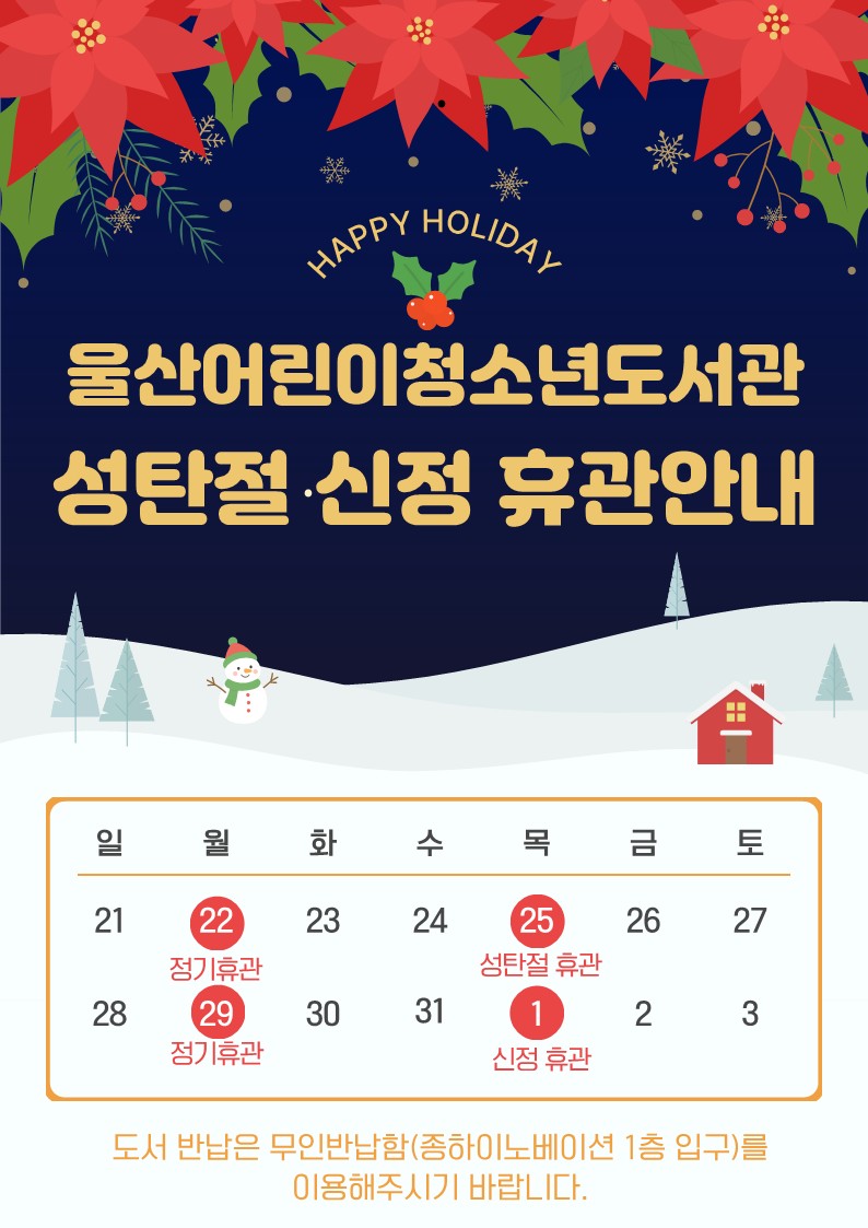 울산어린이청소년도서관 성탄절, 신정 휴관 안내